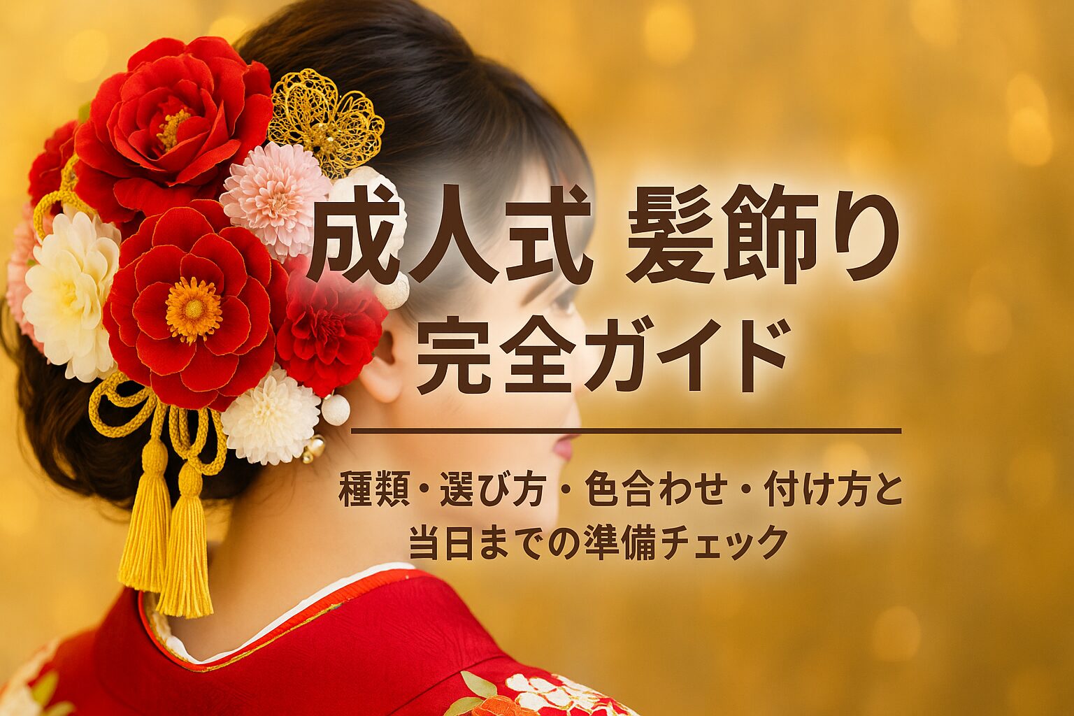 成人式は一生に一度。振袖や帯、草履バッグはもちろん大切ですが、写真で一番目に入るのは「顔まわり=髪飾り」です。髪飾りはサイズ・色・素材・留め具で印象が激変します。本記事では、初心者の方にもわかりやすく、成人式の髪飾りの基本から最新トレンド、失敗しない選び方、当日の付け方・崩れにくいコツ、購入時期や予算感までを丁寧に解説します。振袖コーデや帯結び記事への内部リンクも用意したので、成人式準備の全体像を一気に整えましょう。